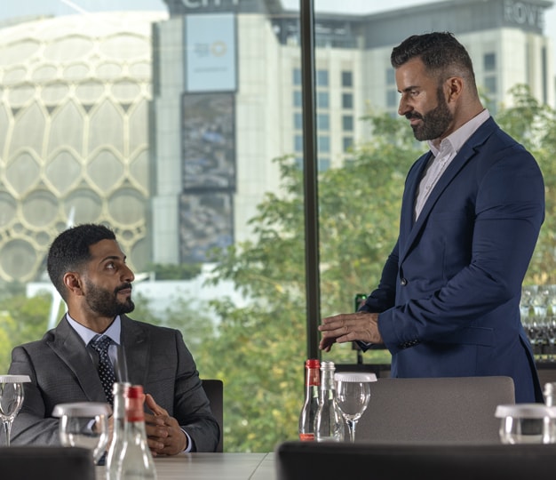 ضيافة راقية وخدمات تقديم طعام حائزة على جوائز تصلكم في جناح العرض الخاص بكم. نقدم لكم فرصة للتميز والتفرد خلال مشاركتكم في فعاليات مركز دبي للمعارض وذلك عبر مجموعتنا الواسعة من المأكولات والمشروبات المخصصة للضيافة في الأجنحة وللاجتماعات مع العملاء والتي يقدمها فريق الضيافة الحائز على جوائز.